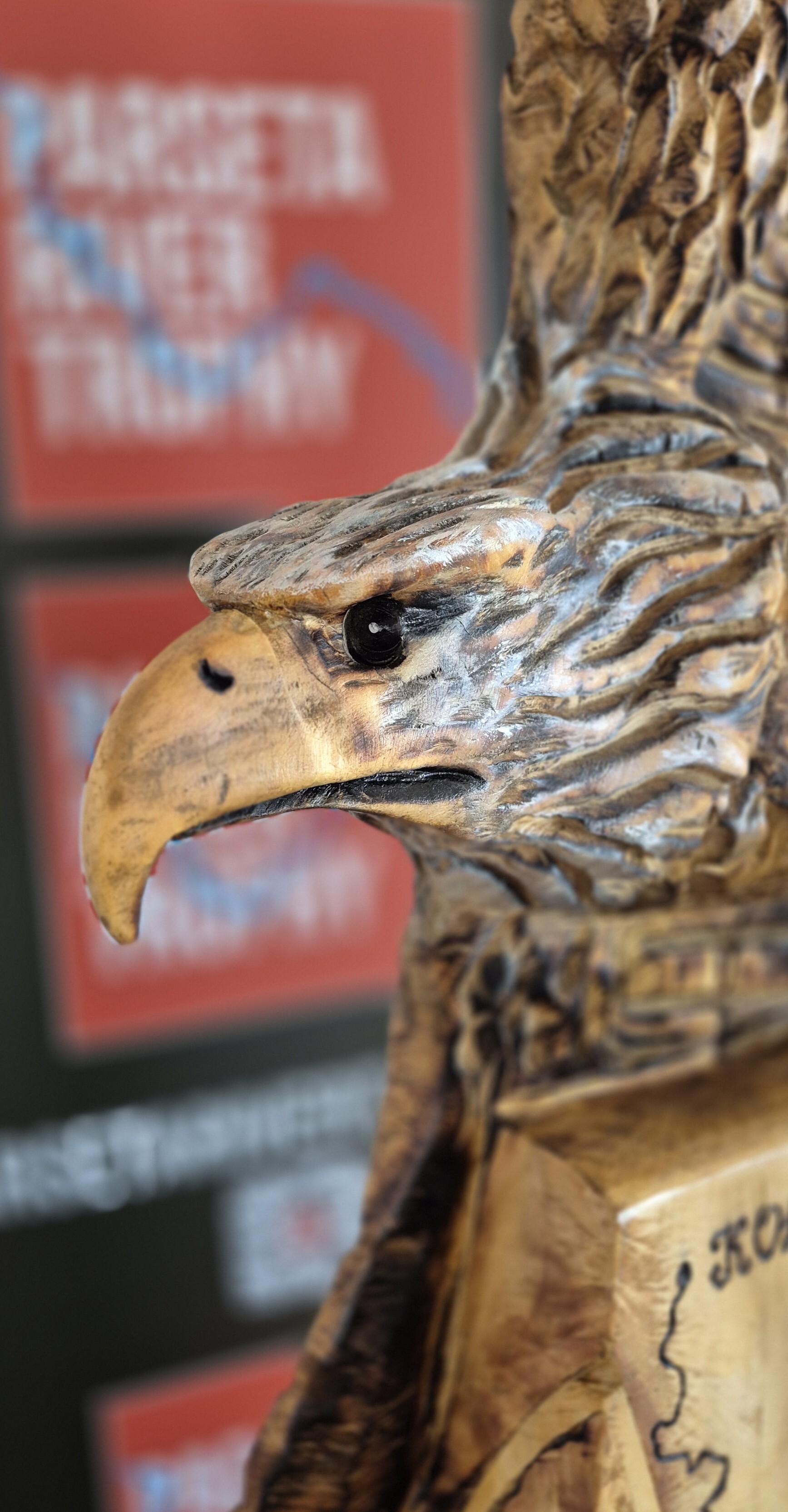 Zawsze jest tak że piła "robi" większą cześć roboty. Może nawet 80-90 %, główny zarys, sylwetkę, kształt - później wchodzą w ruch dłuta, szlifierka, niejednokrotnie papier ścierny i szlifowanie ręczne - które osobiście uwielbiam, bo zaczynam wówczas czuć rzeźbę - jest to co prawda czasochłonne, ale niezbędne. Na końcu konserwacja, impregnacja i voila. Chociaż nie! Żadna euforia, bo właśnie wtedy zaczyna się czas, kiedy zaczynam mieć obawy przed tym, że w normalnym procesie wysychania drewna nastąpi pęknięcie w najbardziej newralgicznej części orła czyli na dziobie lub oku, bo jeśli to nastąpi w innym miejscu to nawet doda uroku. Należy pamiętać że drewno będzie pękać, taka natura. Pozytywne oceny? - a to dziękuję bardzo, to miłe.